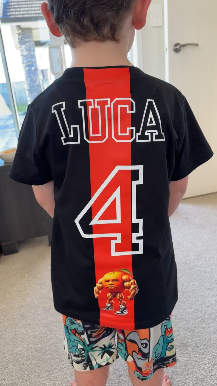 Be sure to leave a note in the custom order box with your little persons name and age (or any customization you may want for the back of the tee).